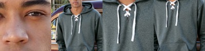 - Topstitched hood and neck