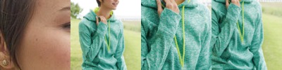 96% polyester, 4% spandex bonded to brushed jersey; Sleeves, hood and panels have the Tech Print pattern detail; Adjustable hood; Adjustable drop tail hem with hidden drawcord; Dual front and chest zippered pockets; Dual inside pockets;