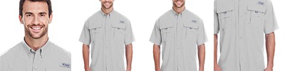 3 oz., 100% Tactel®; nylon taffeta Back Country Cloth; Quick-dry; Omni-Shade™; UPF 30 sun protection; Button-down collar; Vented; Utility loop; Columbia PFG logo patch on rod holder on left chest; PFG tags on left and right chest pockets.