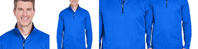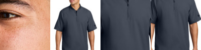 3.5 oz., 100% polyester; Brushed back mechanical stretch fabric for comfort and fit; Moisture-wicking; UPF 40+ protection; Half-moon patch; Contrast piping on zipper opening and lower panels; Concealed zipper pockets for personal electronic devices;