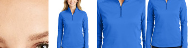 6.49 oz./yd2 / 220 gsm, 100% polyester mélange jersey bonded with fleece; Center front coil zipper with semi autolock slider ; Front and back princess seam for flattering feminine fit; Front hand-warmer pouch pocket; Tonal coverstitch details at shoulders;