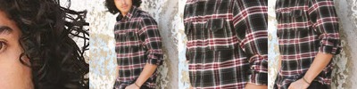 - Button-down collar with woodtone buttons