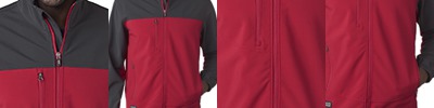 95% polyester/5% spandex soft shell jacket; Soft interior lining; Wind and water resistant; Four-way stretch comfort; Adjustable Velcro® cuffs; Zippered chest and hand pockets; Media port.;