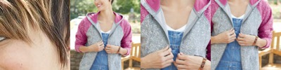 - Contrast color sleeves and hood lining