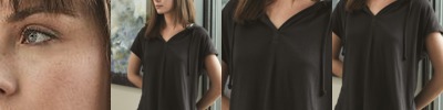 - Cover stitched shoulder panels, armholes and hood