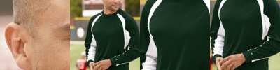 - Contrast-color raglan sleeves