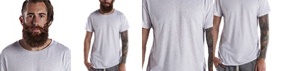 4.9 oz., 50% polyester / 38% combed ringspun cotton / 12% rayon; 20's singles; Shoulder-to-shoulder taping; Double-needle stitching on sleeves and bottom hem; High-low bottom with slit sides; Athletic retail fit; Sideseamed; Made in the USA;