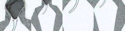 7 oz.; 100% spun polyester fleece fabric; Solid fleece body; Charcoal fleck sleeves and hood; High neckline; Front pouch pocket;