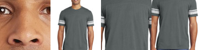 This moisture-wicking, snag-resistant tee combines two heather colors for a unique colorblock design. 3.8-ounce, 100% polyester jersey Gently contoured silhouette Removable tag for comfort and relabeling Neck taping Contrast raglan sleeves Curved drop tail hem **