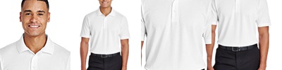 5.1 oz./yd2 / 172 gsm, 100% polyester face plaited to 60% polyester, 40% cotton back (total overall garment 61% polyester, 39% cotton) with moisture-wicking performance; Proprietary dual-sided mesh pique knit constructed of fine denier wicking polyester on the outside and soft-as-cotton wicking blend on the inside; Matching flat knit collar; Luxury, comfort and performance in one; Three-button placket; Dyed-to-match buttons;