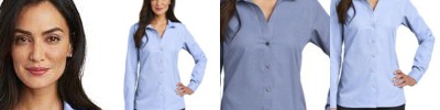 Thoroughly updated, this crisp nailhead shirt has a silky feel and a wrinkle-resistant finish for exceptional non-iron performance. 4-ounce, 60/40 cotton/polyester with pucker-free taped seams and RH engraved buttons to elevate the office-ready look. Open collar and neckline, bust darts and back seaming. Mitered adjustable cuffs.