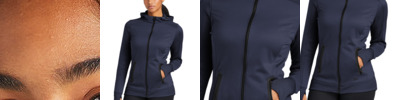7.1 oz., 79% polyester, 21% spandex interlock; moisture-wicking performance; draped open front for easy layering; longer length for everyday activity and movement; always flattering Perfect Fit;