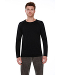 4.3 oz., 52% cotton 48% polyester; 30 singles; Ultra-Fine Cotton Blend; Fashion fit; Side seams; Raglan sleeves; Lightweight sweater look; Ribbed cuff and bottom hem; Tear-away label; Made in a W.R.A.P. certified factory;