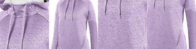7.1 oz., 100% polyester tonal performance wicking fleece; 100% polyester performance wicking fleece solid contrast piping detail ; Wicks moisture away from the body ; Scuba shaped hood with contrast color lightweight mesh lining ; Ladies' fit ; Pad print label ; Heathered tipped drawcord on sizes M-2XL only ;