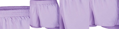 Shell is 100% polyester micropoly ; Inserts are 100% polyester mesh ; Lining is 100% polyester wicking crepe ; Liner wicks moisture ; Girls fit ; Low-rise; Covered elastic waistband;