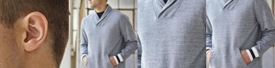 - 1x1 ribbed yarn-dyed striped cuffs, waist and inside collar