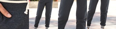 - 1x1 ribbed yarn-dyed striped cuffs and waistband