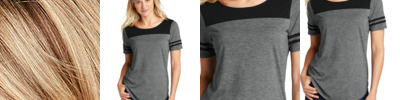 - 4.4-ounce, 75/13/12 poly/cotton/rayon jersey with PosiCharge technology
