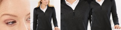 A464 Women's Heathered Quarter-Zip Pullover with Colorblocked Shoulders