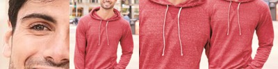 - Double-needle coverstitched hood, raglan sleeve, and band bottom