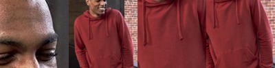 - Self-fabric lapover hood