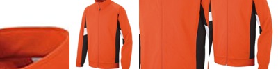 8.7 oz/yd² / 295 gsm, 86% polyester, 14% spandex jersey; Moisture-wicking; UV protection performance; Center front coil zipper with decorative grosgrain zipper pull; Luxury, comfort and performance in one; Raglan sleeve;