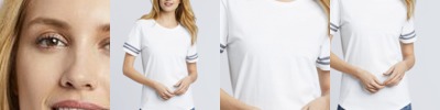4.5 oz/yd2 / 160 gsm, 100% polyester jersey; Moisture-wicking and antimicrobial properties; ChromaSoft™ technology combines the colorfastness of cationic dyes with soft cotton-feel performance; Tear away label; Active fit; Easy care;