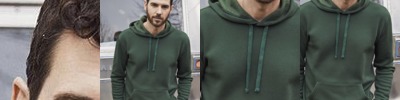 8.3 oz., 80% ringspun cotton, 20% polyester midweight fabric; Soft cotton faced fabric creates ideal printing surface; Twin needle stitching; Double fabric hood; Front pouch pocket with hidden opening for earphone feed; Unisex style; Easy tear labels;
