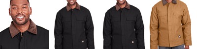 10 oz., heavy-duty cotton duck; Heavyweight sherpa-lined; Heavy-duty brass zipper; Side vents with snap closure; Triple-needle stitched main seams; Extended back for added warmth; Pleated elbows and action back;