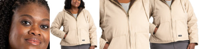 10 oz., heavy-duty cotton duck; Heavyweight quilt-lined taffeta liner; Water-repellent finish; Triple-needle stitched main seam; Heavy-duty brass zipper; Three-piece insulated hood with drawstring; Pleated action back; Pleated elbows; Two front patch pockets; Three inside pockets; Manufactured in a LEED (Leadership in Energy and Environmental Design) certified factory;