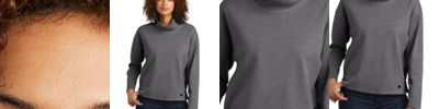 - Grey Three Heather/Black and True Blue Heather/Grey Three are 88/12 polyester/elastane