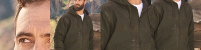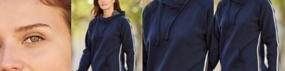 - Contrast jersey lined hood with sewn eyelets and matching drawcord