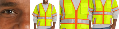 - Hi-Visibility: Front and back reflective striping and fluorescent yellow/green with color blocking