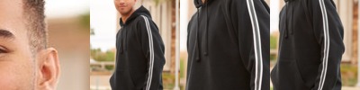 - 1" wide set-in striped woven taping along sleeves and side seams