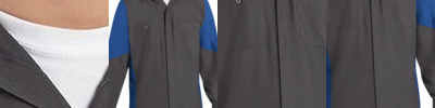 - Two layered right chest pockets: one open, one divided