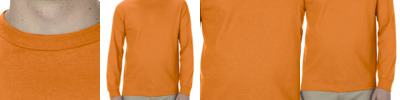 6.1 oz., 100% pre-shrunk cotton, 18 singles; Open-end yarn; Two needle bottom hem; Made in USA;