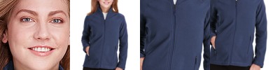 8.26 oz/yd2 / 280 gsm, 100% polyester brushed-back pique fleece with moisture-wicking performance; Center front coil zipper with decorative grosgrain zipper pull; Princess seams for flattering feminine fit; Side vents;