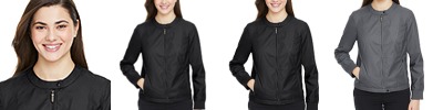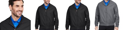 Body: 3.5 oz./yd2 / 120 gsm, 100% polyester dobby; Lining: 100% polyester tafetta; Water resistant; Center front coil zipper with autolock slider and dop zipper pul; Lower front zippered pockets; Dyed-to-match rib trim at neck, cuffs and bottom hem;