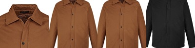 Body: 3.5 oz./yd2 / 120 gsm, 100% polyester dobby; Lining: 100% polyester tafetta; Water resistant; Center front coil zipper with autolock slider and dop zipper pul; Lower front zippered pockets; Dyed-to-match rib trim at cuffs ; Metal snap closure at top and bottom placket;