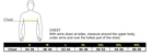 | CHEST | 32 - 34 | 35 - 37 | 38 - 40 | 41 - 43 | 44 - 46 | 47 - 49 | 50 - 52 | 53 - 55 |