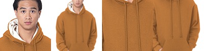 17 oz. ; 80% cotton, 20% polyester ; 100% cotton waffle thermal lining; High-quality, heavyweight pre-shrunk fabric; Contrast lining; Matching drawstrings on double-lined hood; Spandex in cuff and band with front pockets;