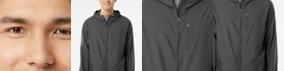 100% polyester nail head weave fabric ; Detachable hood with bungee cord and stopper; Invisible zipper inside chest for embroidery access ; Zippered handwarmer pockets; Modern fit;