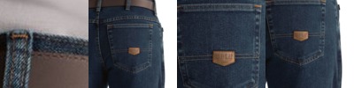 - Two double welt set-in ergonomically designed slanted back pockets