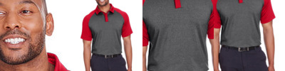 90% polyester / 10% elastane jersey 190 gsm; Spyder branded 3mm buttons ; 3-button covered placket; Heathered front and back body; Iconic Spyder bug logo center back; Vent details at hem; Modern fit;