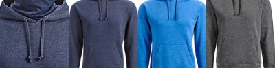 280 gsm, 70% ringspun cotton, 30% polyester; Front pouch pocket;