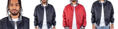 - Solid 1x1 rib inside collar, cuffs and waistband