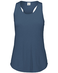3.8 oz., 50% polyester/38% cotton/12% rayon tri-blend knit; Ladies' fit; Fits loose to body; Tear away label; Scoop neck; Racerback with keyhole; Contoured bottom;