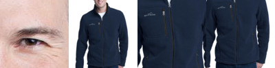 Built for movement, this smooth-faced, brushed-back fleece jacket is sophisticated-yet has a sense for adventure. Black contrast details at side panels, locking reverse coil zippers and stretch binding at cuffs and hem. Front zippered pockets. Contrast Eddie Bauer heat transfer logo on the left sleeve. Made of 5.6-ounce, 95/5 poly/spandex fleece.
