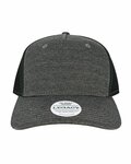 - Heather Tan/Black with mesh back is 55/35/10 acrylic/polyester/wool