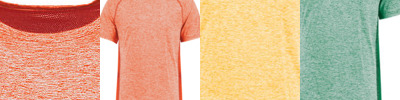 87% polyester, 13% elastane heathered wicking knit with Coolcore technology, 92% polyester knitted mesh, 8% elastane wicking knit inserts with Coolcore technology